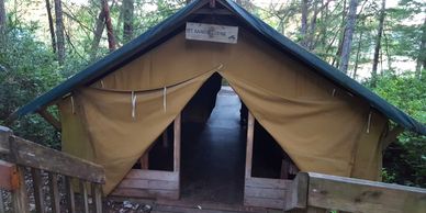 The Hilltop unit has wood floor tents with bunks. It has a covered cook shelter and is close to events. It's a little more outdoorsy than Hacienda, but a very natural transition for campers without a lot of camping experience.